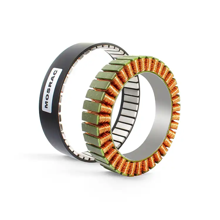 The Mosrac UE-4014 standard version is a high-performance, frameless outer-rotor torque motor designed for demanding applications such as robotic joints, exoskeletons, collaborative robots, medical equipment, and aerospace systems. It operates at 24V and features ultra-low cogging torque with a large hollow shaft. This design allows flexible integration, including through-hole cabling, direct shaft coupling, or seamless connection with harmonic drive systems.